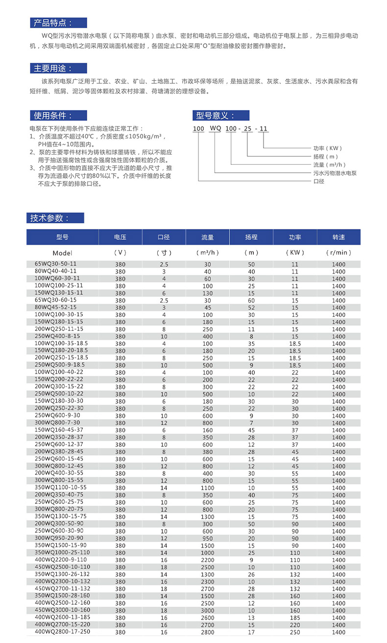 WQ型污水污物潜水电泵